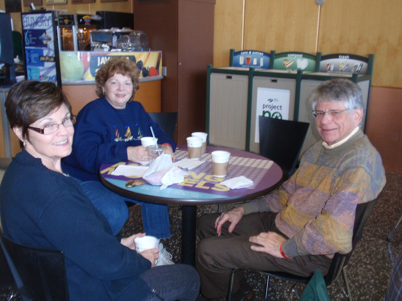 Enjoying coffee and pastry treat Patty F, Vickie L, John S |