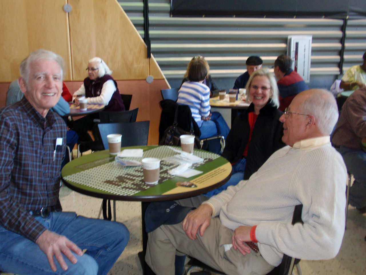 Enjoying coffee and pastry treat Woody R, Linda H, Joella W |