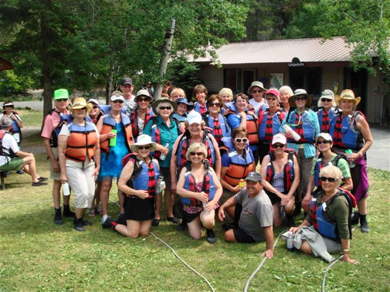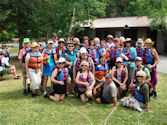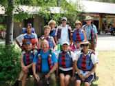 | Group picture of the Raft Floaters | | Dick & Andrea J zipping | | Jan M & Sharon M zipping |