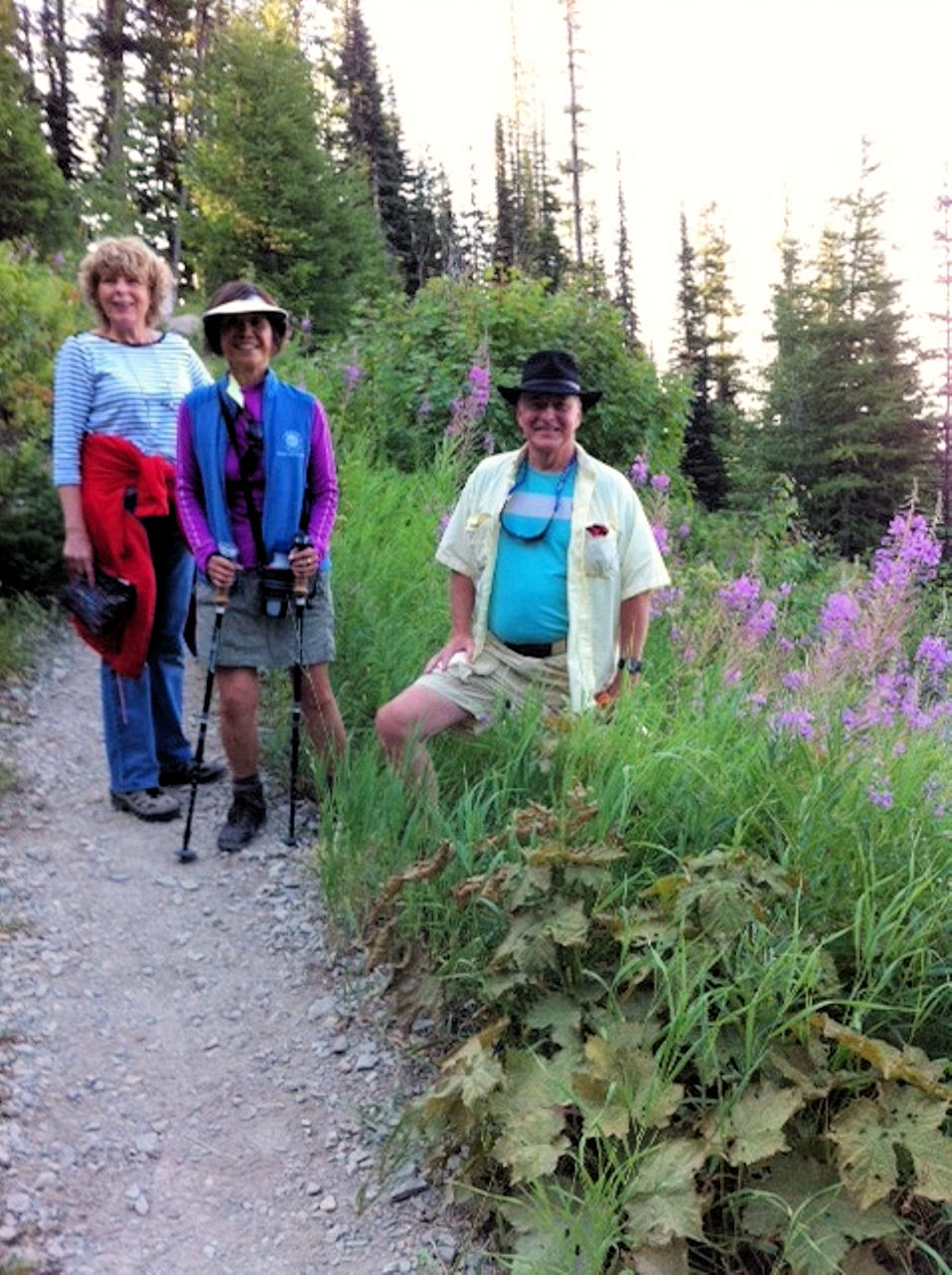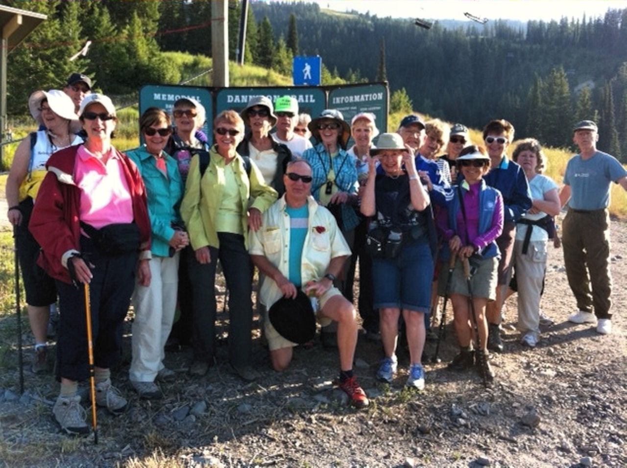 Sharon M, Joella W and Karen C hiking "Danny on the Trail" | | Joyce B, Connie H and Jim M hiking "Danny on the Trail" | | John S, Ken M and Jim M at the top of the mountain |