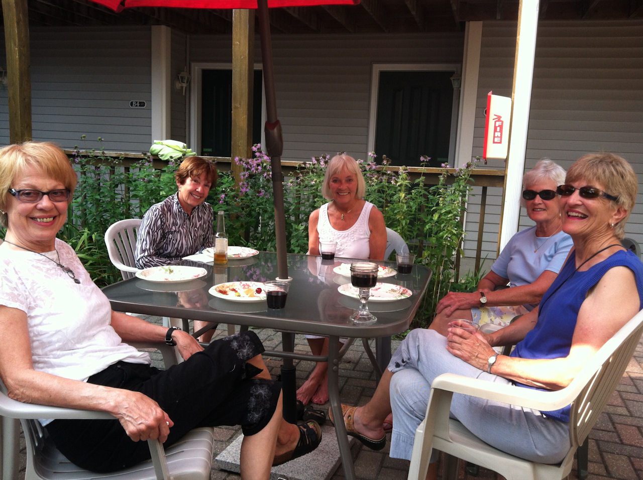 Enjoying downtown Lanesboro: Colleen B, Sharon P, Mary Ellen G, Kathy P | | Co-chairs: Mary V & Patty F | | Social hour: Cathy H, Mary Ellen G, Carol T, Dale B, Margie D, Doug L and Mary