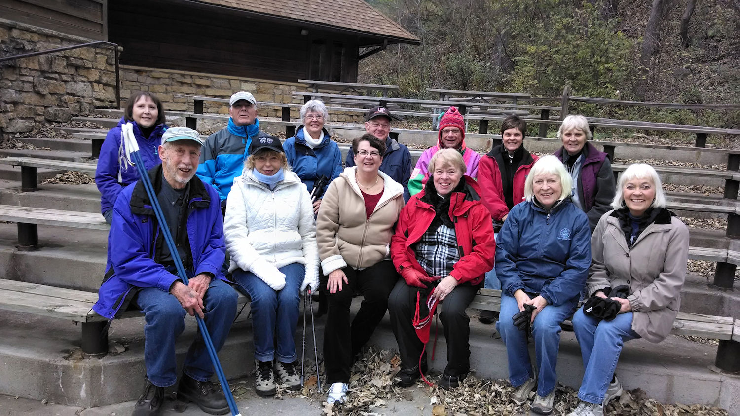 All the ULLR hikers: Back row: Diana C, John E, Carolyn B, Jim S, John S, Patty F, Pam A Front row: Bill L, Joyce B, Linda H, Barb K, Mary Ellen G, Nancy S
