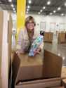 | Wayne J, an expert with the tape machine | | Carol B and Cheryl R unfolding boxes | | Vickie L taking a new box from a pallet and a Target employee helping tape |