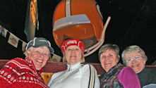 John S, Dave S, Patty F, Sharon M, Diane E Does anyone know which way is home? | | Karen H, Barb K Red and black twins - but where are their ULLR bandanas? | | Barb K, Karen H, Patty F, Diane E In Packer territory |