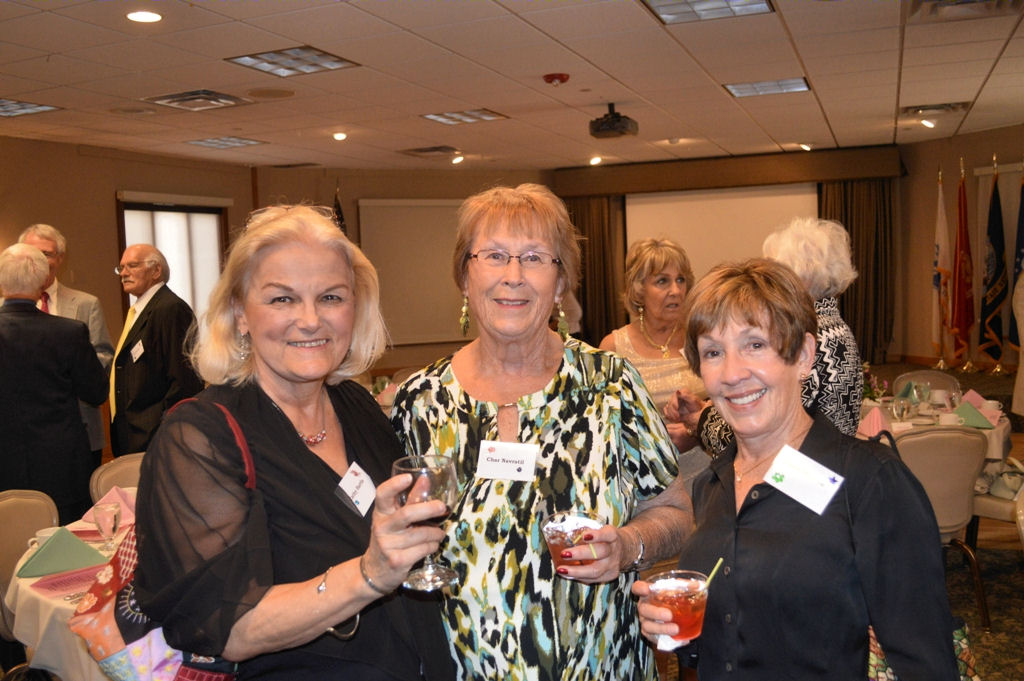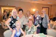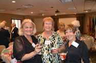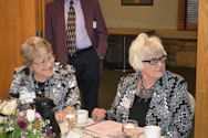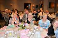 ULLRs sitting at tables decorated with baskets of flowers containing