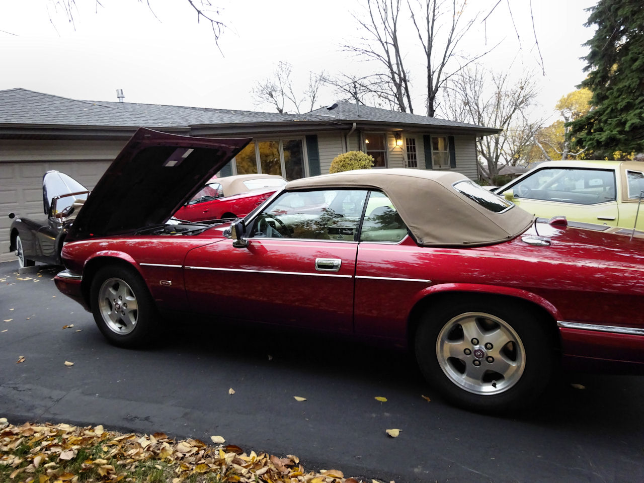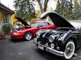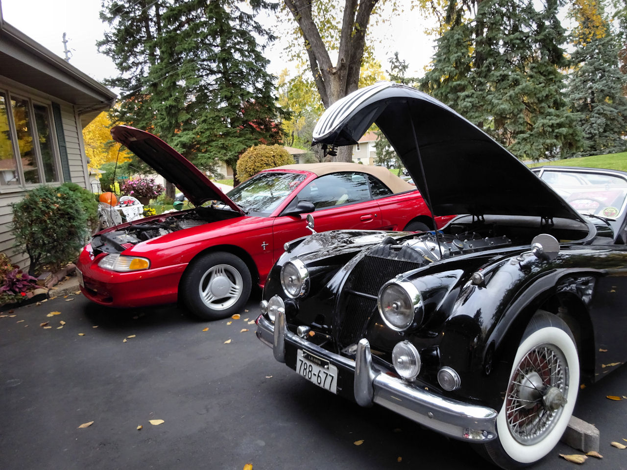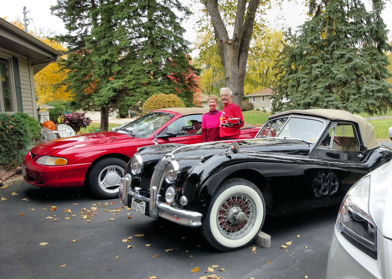 Jaguar Drop Head Coupe and 1994 Mustang convertible, Margo and Jon's