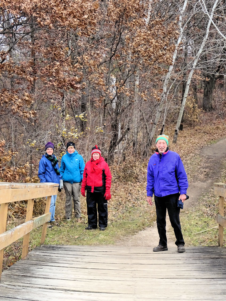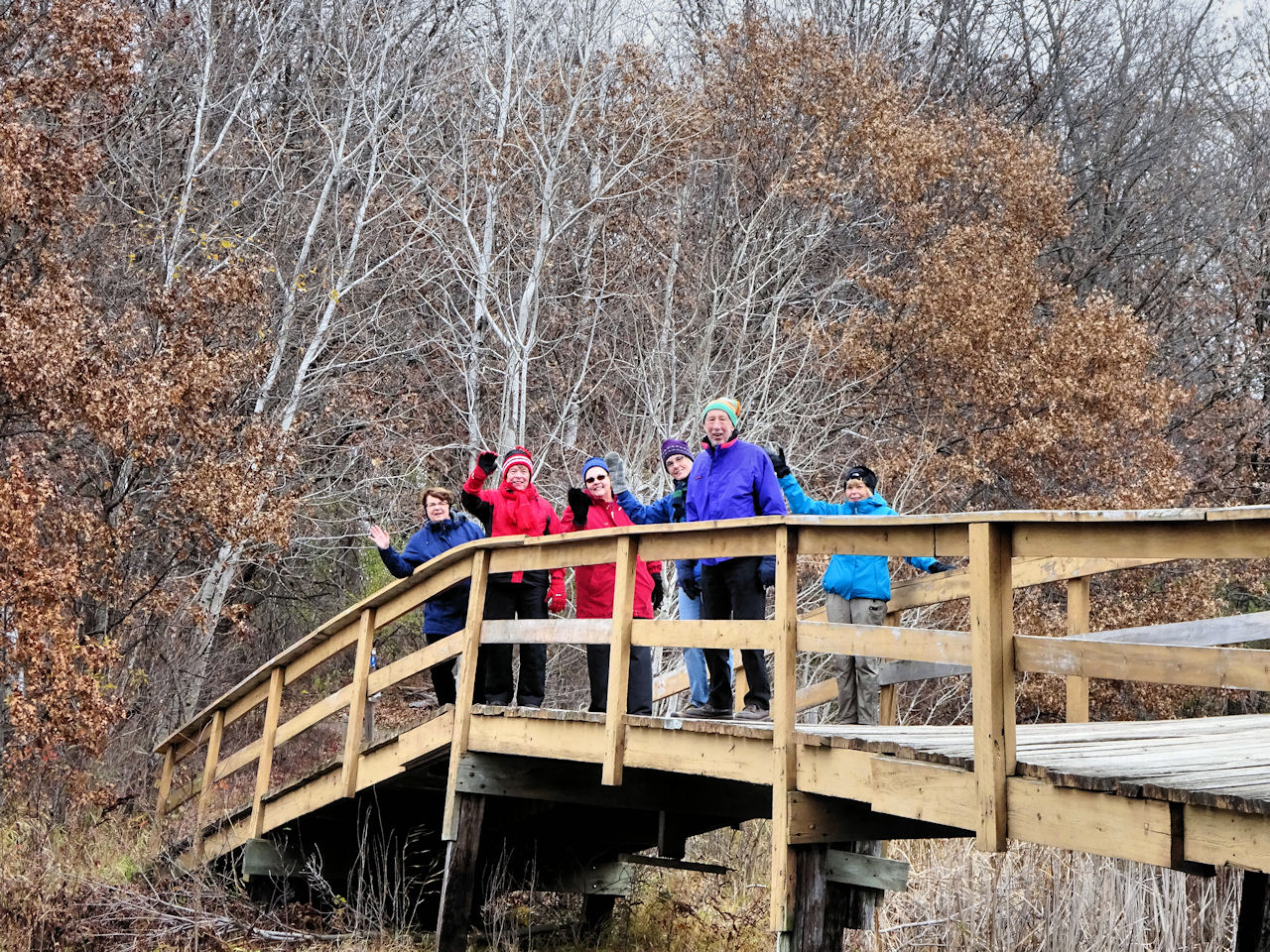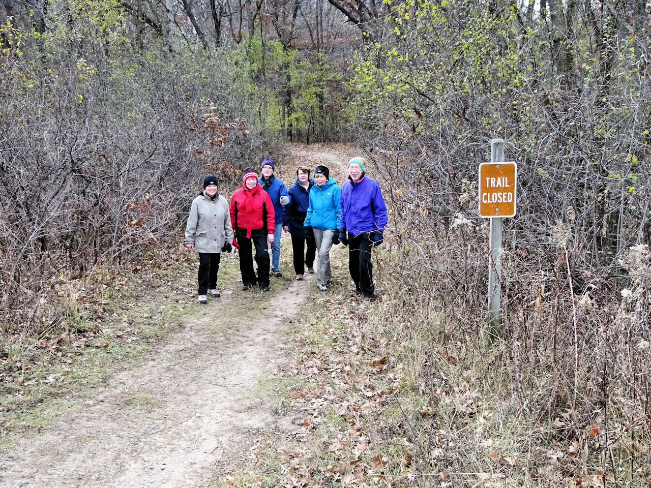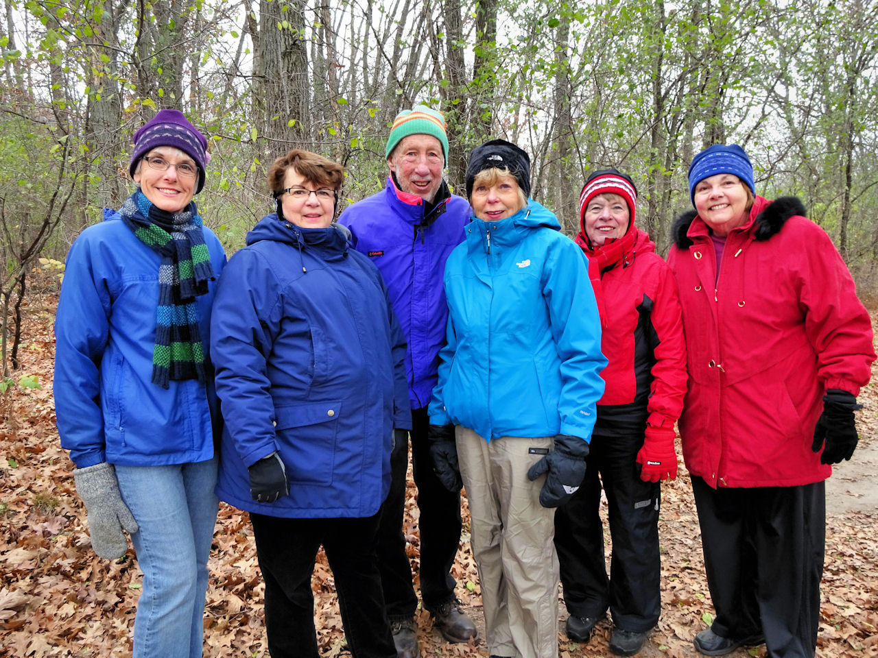 Rose G, Linda H, Bill L, Joyce B, Barb K, Carole M The blue and red jackets provided color on a cloudy fall day |