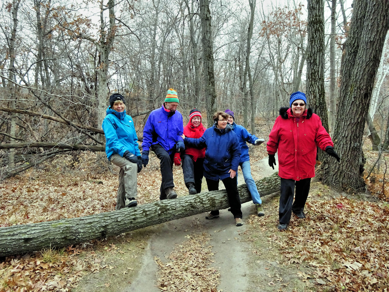Joyce B, Bill L, Barb K, Linda H, Rose G, Carole M Successfully conquering a Lebanon Hills obstacle course |