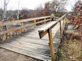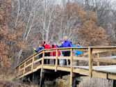 | Nancy S on the rickety bridge | | Rose G, Joyce B, Barb K, Bill L Looking back at the bridge and being happy that the bridge did not collapse | | Nancy S, Barb K, Rose G, Linda H, Joyce B, Bill L Oops - Looks like we weren't supposed to be on that trail. |