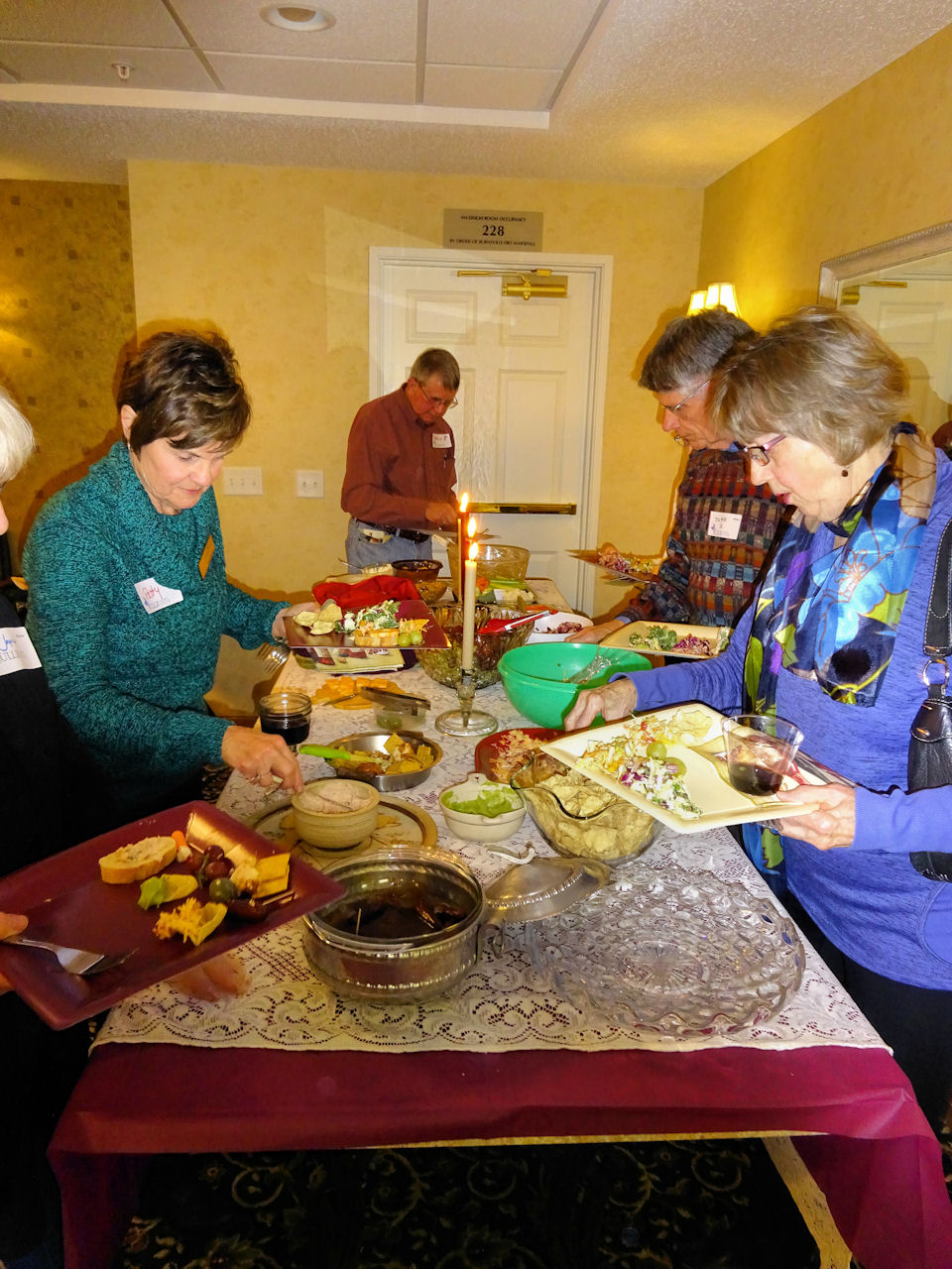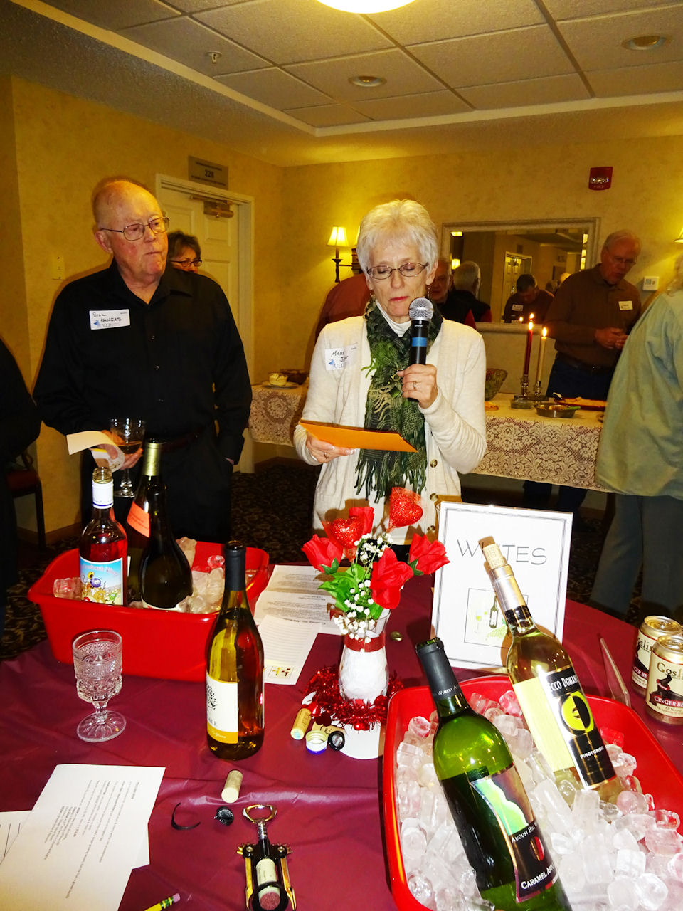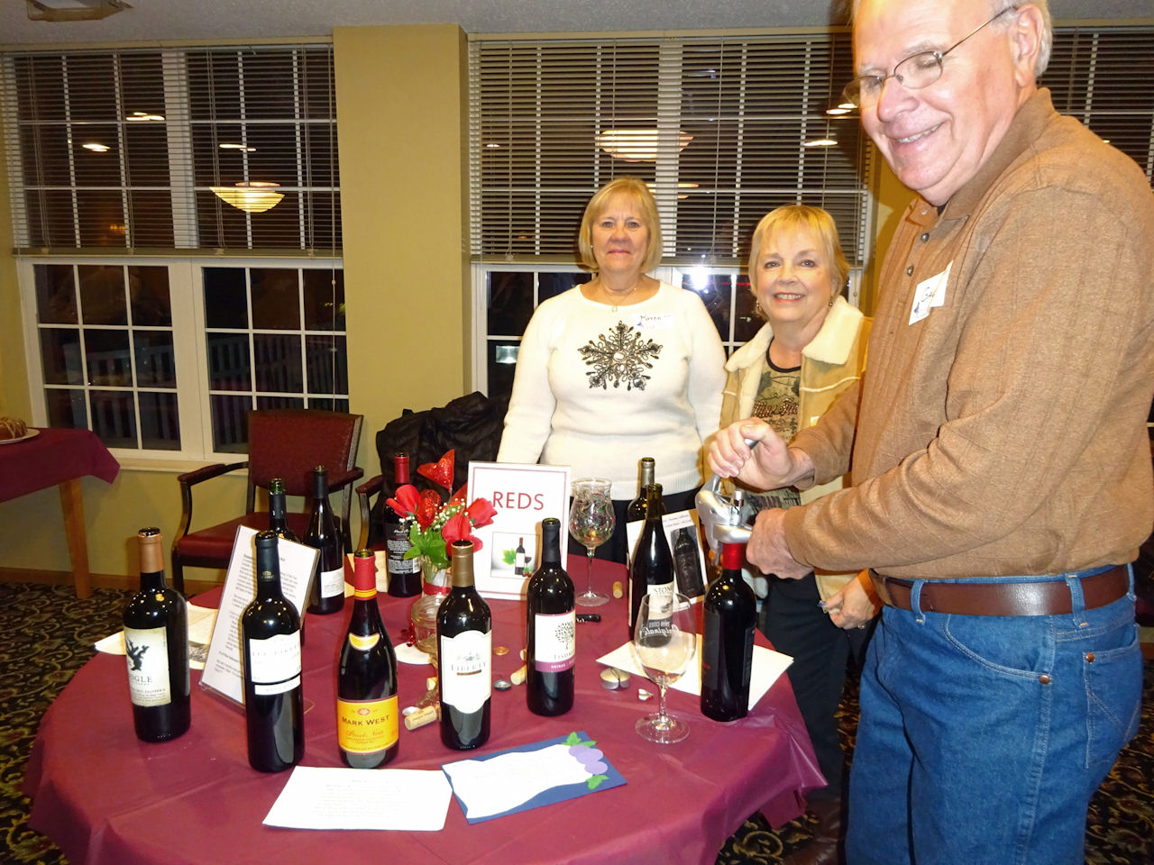Nancy Sand decorated the room with wine-colored table clothes and