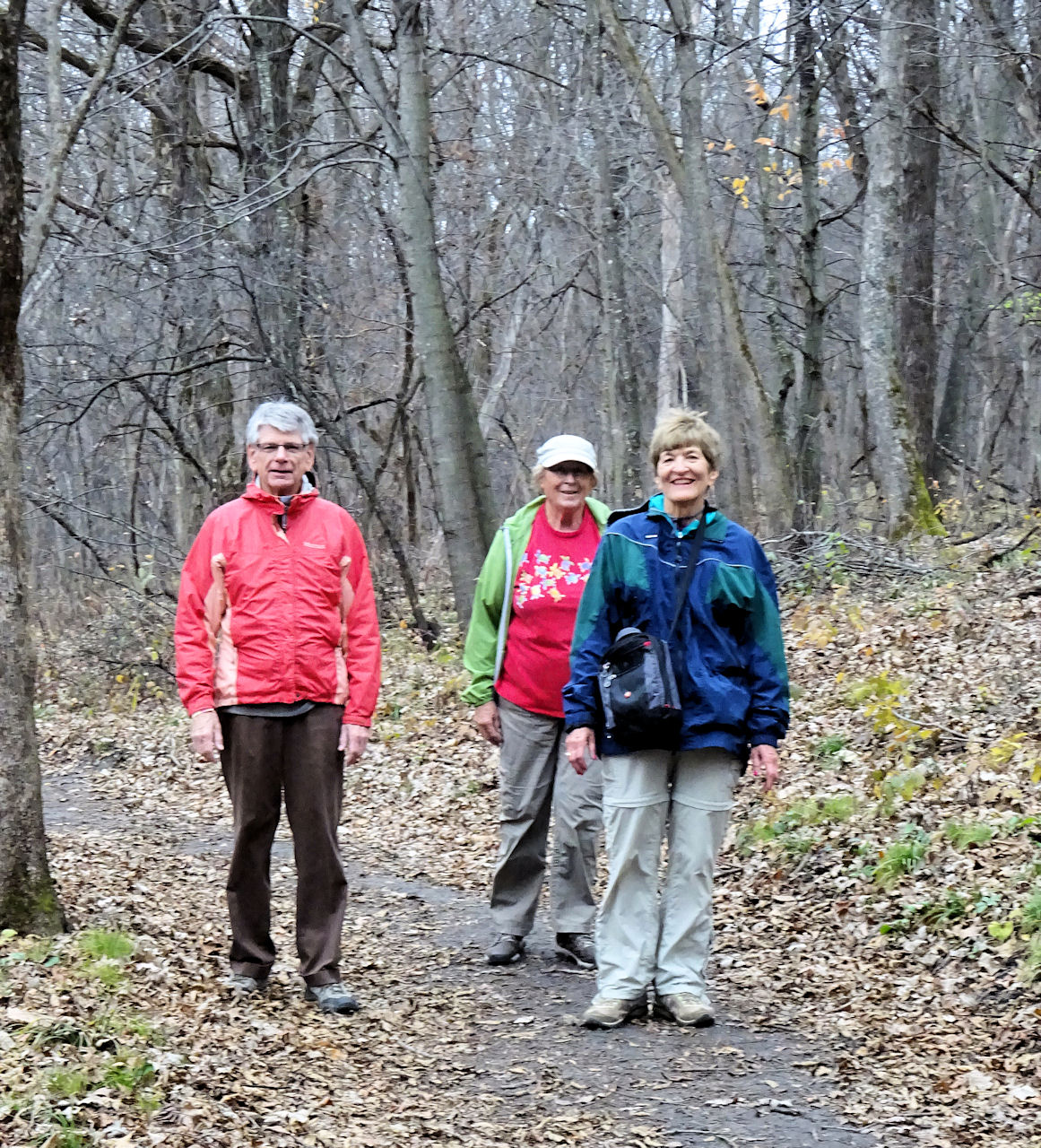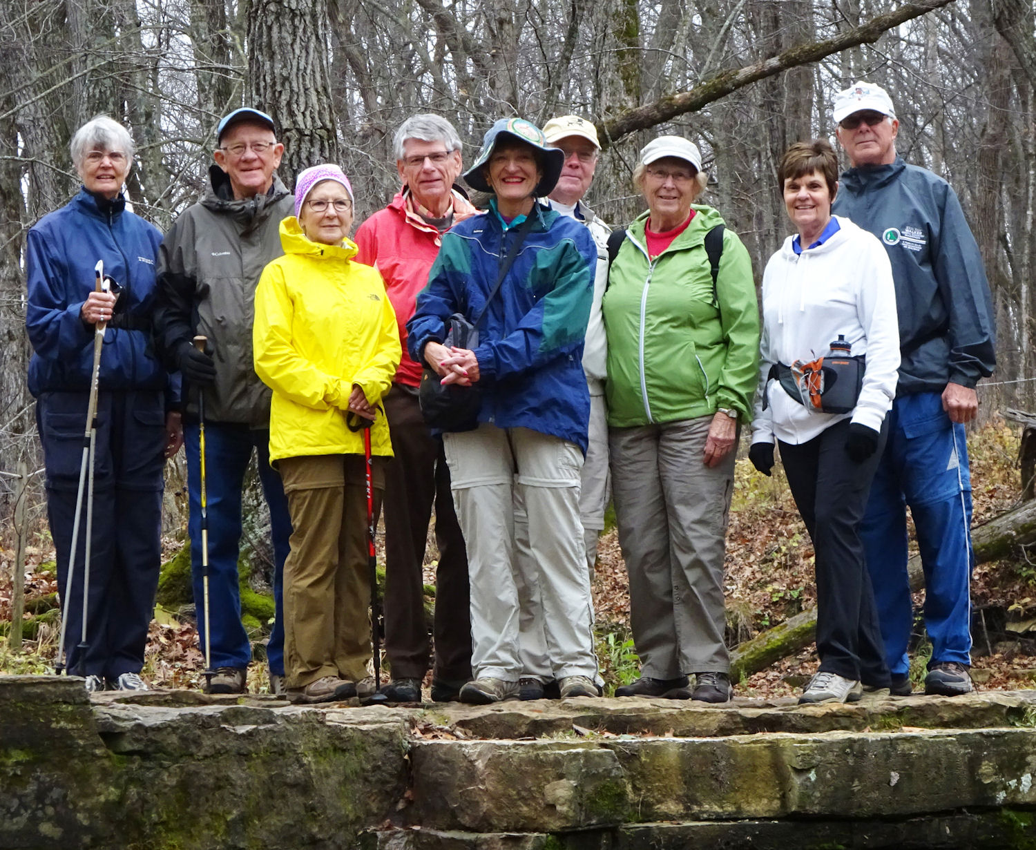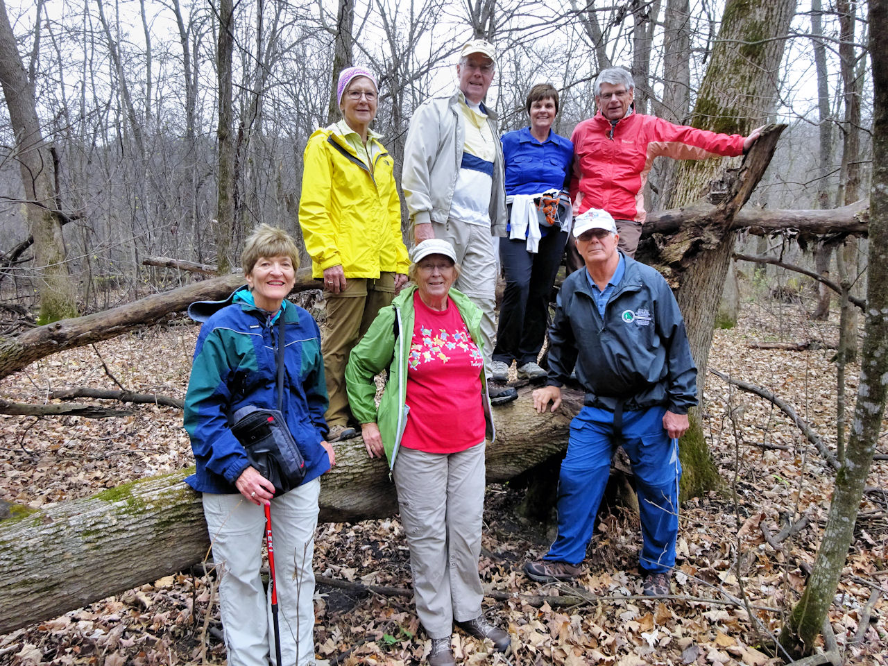 Happy ULLR hikers at the beginning of the Nerstrand Big Woods hike: Carolyn B, Alan M, Pat N, John S, Kathy P, John V, Charlotte N, Patty F, John E |