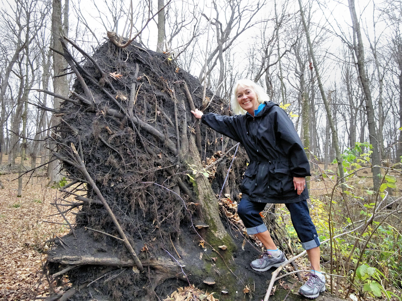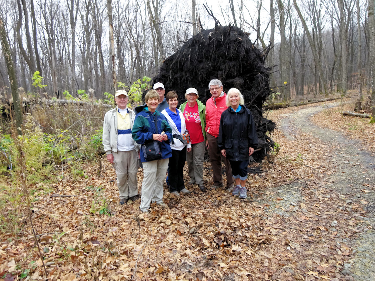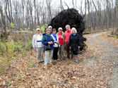 Not Niagara Falls, but the falls on Beaver Creek were nice - John E | | A pretty big tree root. Wouldn't you agree? John V, Kathy P, John E, Patty F, Charlotte N, John S, Nancy S | | Wow - this was one gigantic tree! Trip host Nancy S |