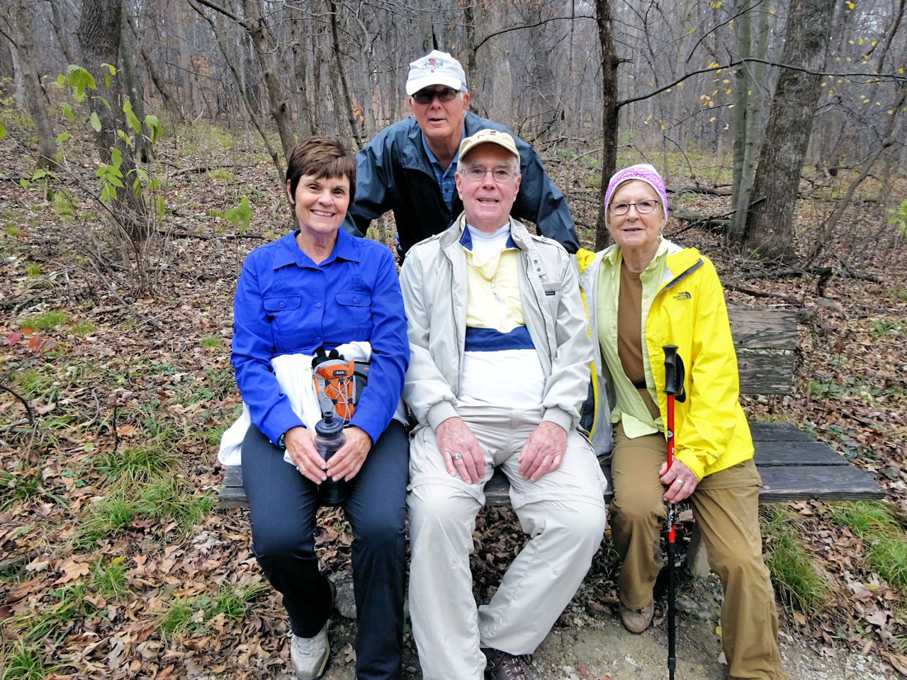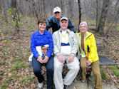 Taking a break - Patty F, John E, John V, Pat N | | On the Beaver Trail - John S, Charlotte N, Kathy P | | 4 ULLRs who walked the log (Pat N, John V, Patty F, John S) & the 3 ULLRs who made sure they didn't fall off (Kathy P, Charlotte N, John E) |