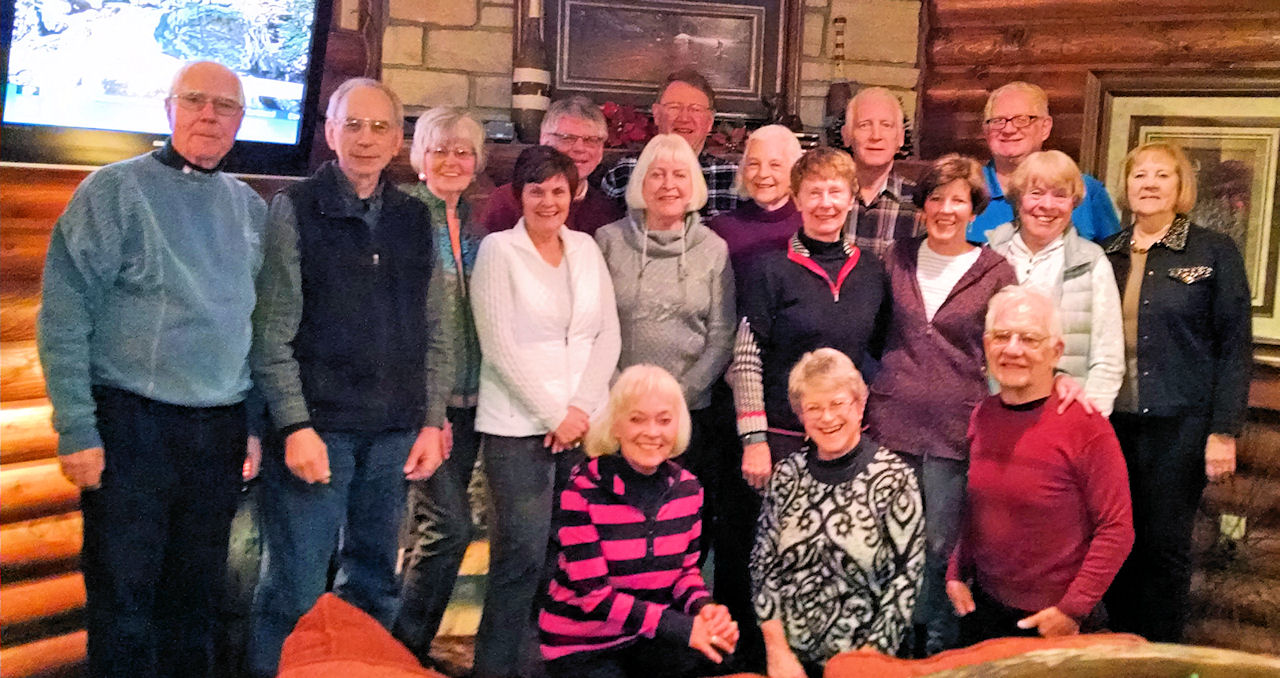 Back: John V, Wayne J, Karen H, John S, Dave R, Jerry S, Tom N Middle: Patty F, Mary Ellen G, Joella W, Sharon M, Judy B, Barb K, Karen H Kneeling: Ken M with Trip Co-Chairs Nancy S & Diane E |