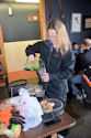 pitchers of beer on the inside. Here she is doling it out to the