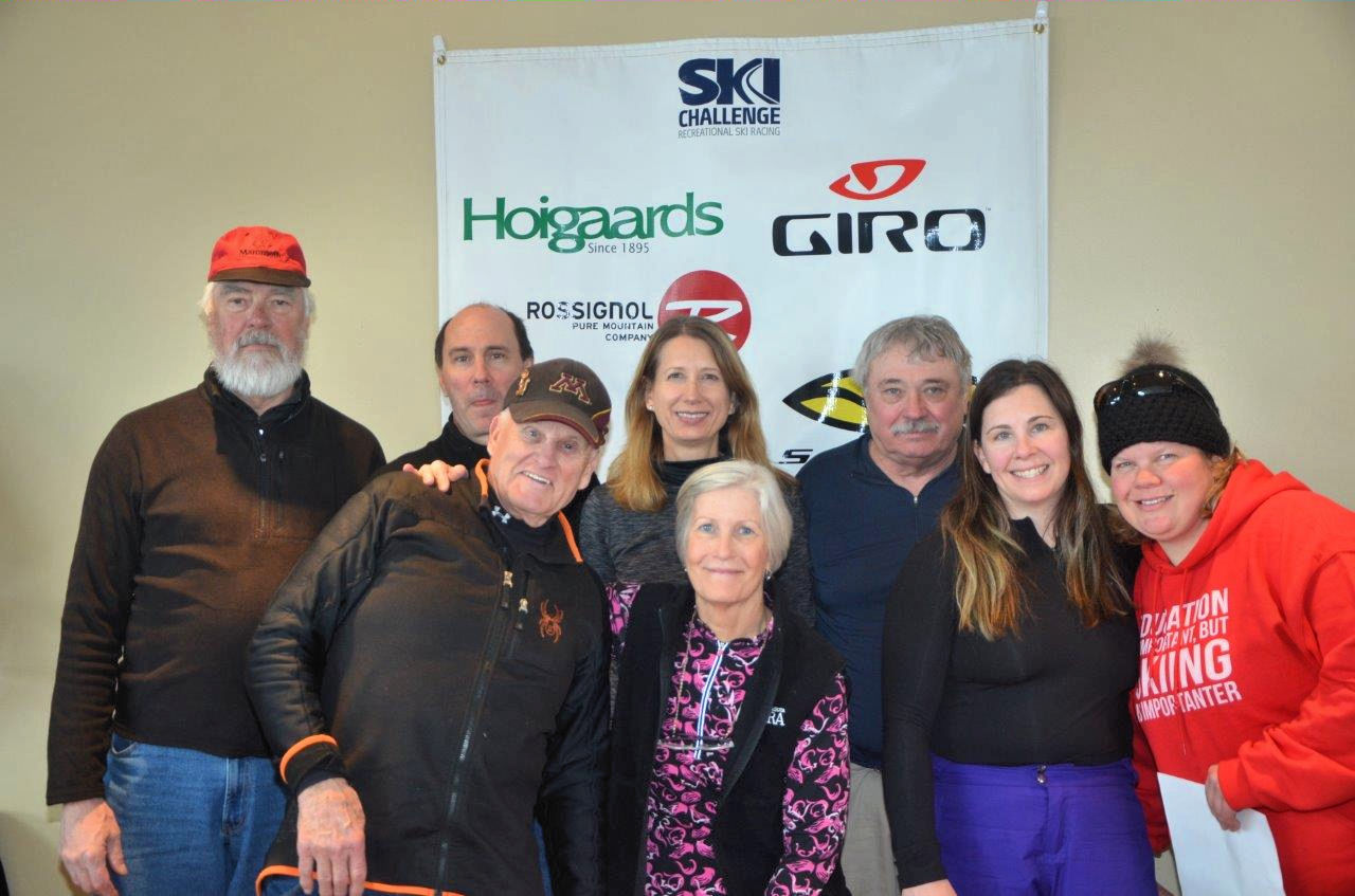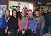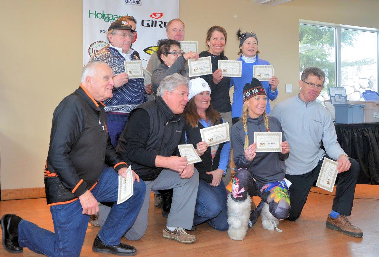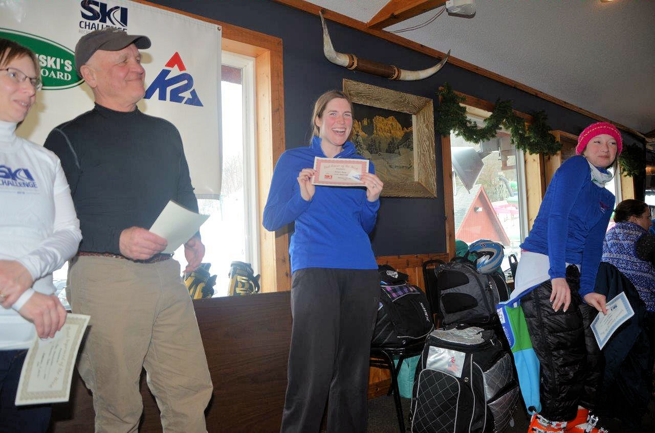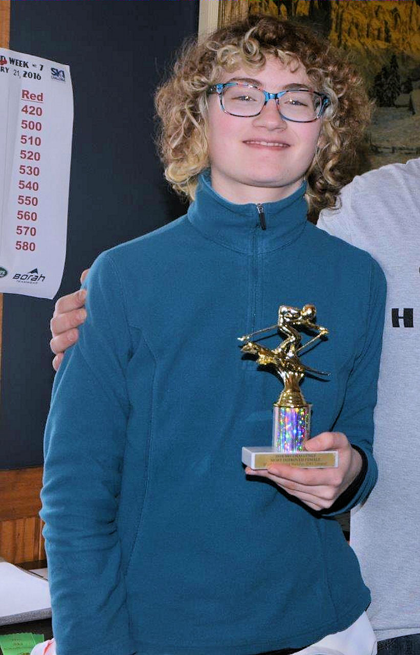 Robin Plank's daughter Kaelyn receiving the award for the Sunday league most improved skier.