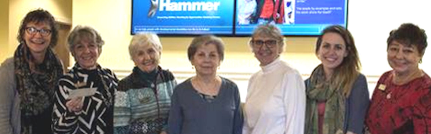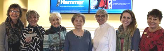 Pictured are a staff member, Jan C, Sally C, Carol B, Pam A, staff, and Nancy K.