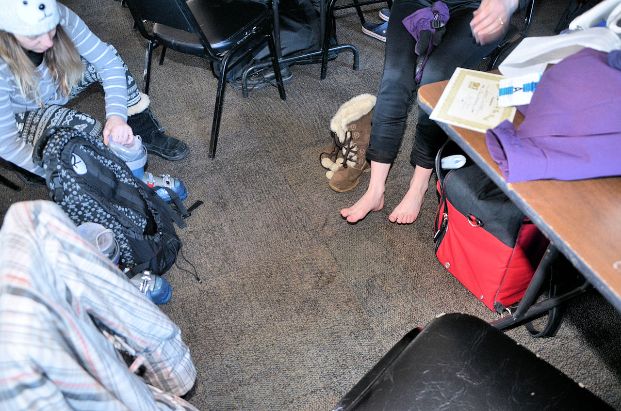 rest of the team has no idea why, but Andria is balancing a huge tub of