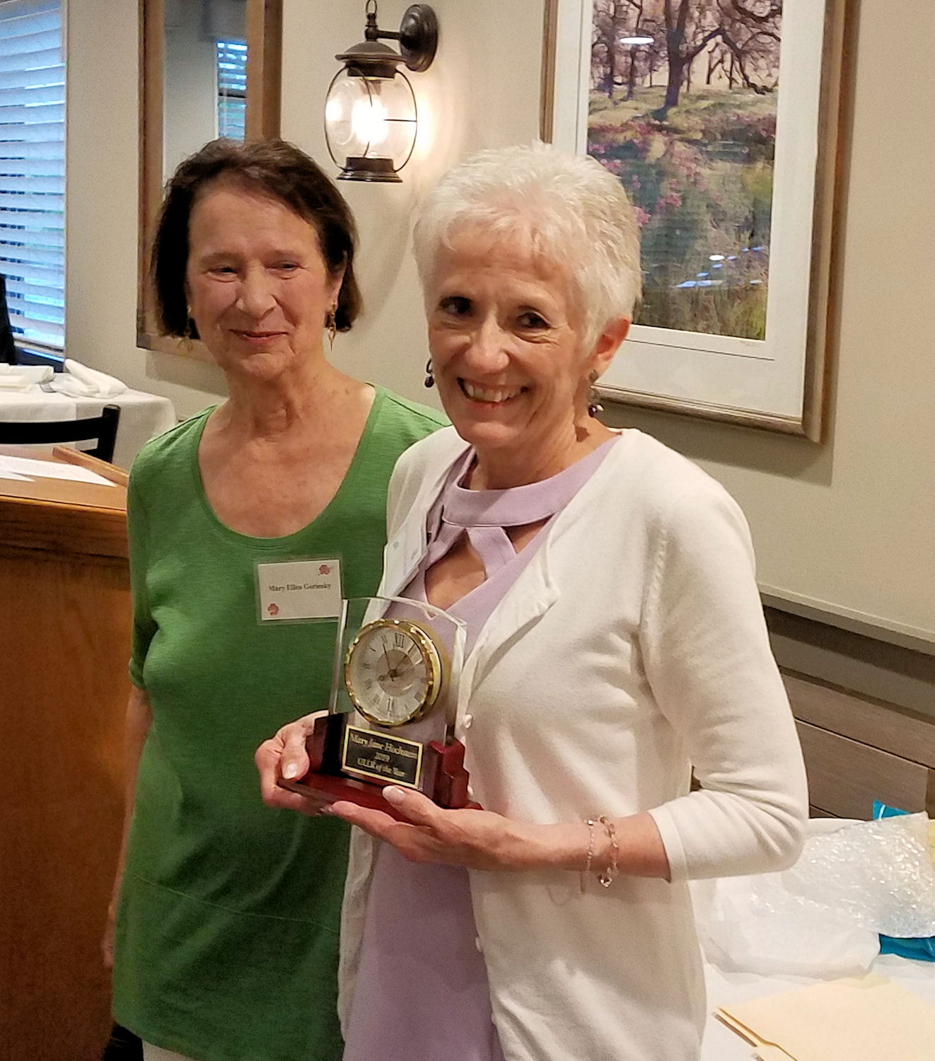 Mary Jane Hochstein and Joan Roe announced two “Distinguished Service