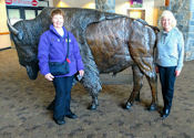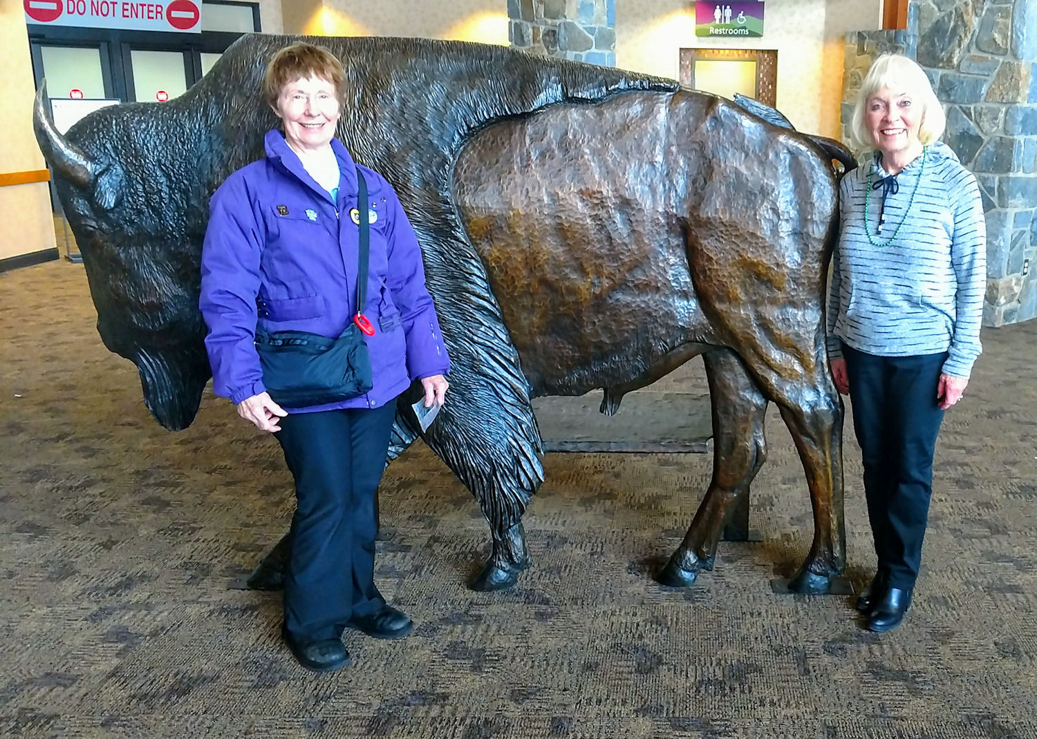 for a photo. Trip Co-Chairs Sharon and Nancy found a bison