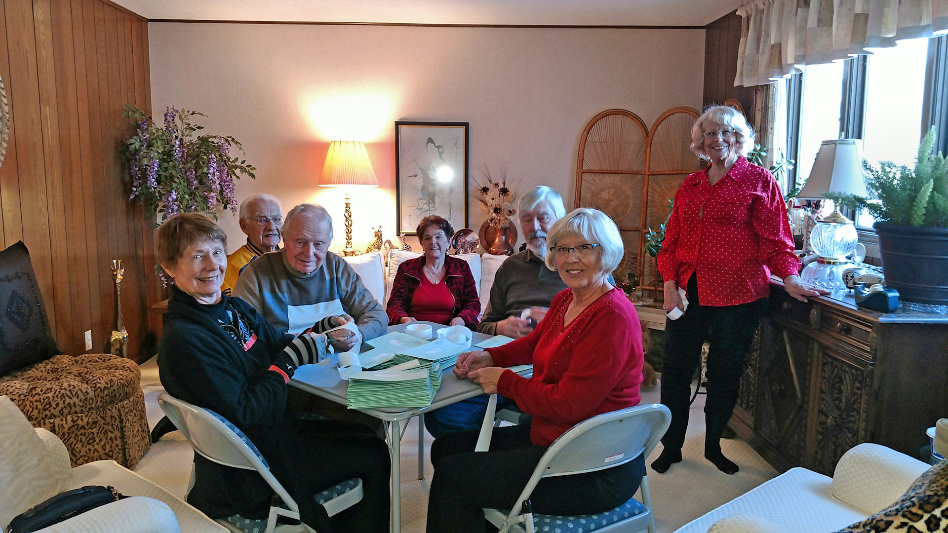 Taping and Stamping Crew: Sharon M, Ken M, Jerry S, Ellise L, Jim H, Jan S, Host Jan B