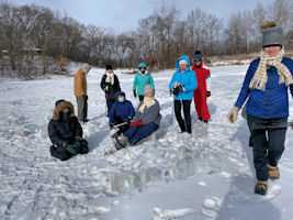 3 mile hike ended near the pond which we walked on to see the ice