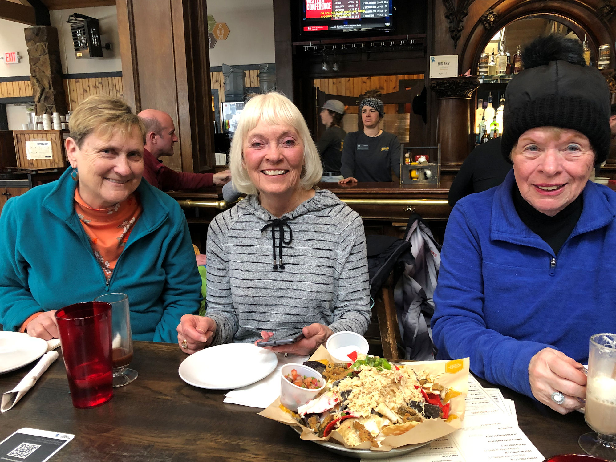 | | |  | | | |  | Snow Hikers at Madison Base: Barb K, Roz R | | Hot Tub Fun: Betty C, Nedra N, Nancy D, Barb K, Dan R, John V, Phil S, Greg M | | Dinner at Nancy D's Son's Restaurant: Nancy D, Kathy L | | |  | |  | |  | Relaxing at Whiskey Jack's after a good day on the slopes: Roz R, Nancy S, Barb K | | 1973 Big Sky Gondola: Roz R, Barb K, Betty C, Sally M, Nedra N | | Whew - What a great day skiing! Lee E, Jim H, Mick G, Nancy S, Kate C, Kathy L | | |  | | | |  | Huntley Lodge Bear: Nancy S | | | | Birthday Celebration: Nancy N, Craig N, Birthday Girl Patty F, John S, Mike B, Karen C, Kate C, Mick G |