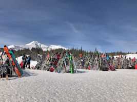 | | BIG SKY VIEWS |  | |  | |  | Big Sky Ramcharger 8-pack bubble lift | | Long lift lines at Swift Current 6-pack bubble lift | | Early morning view of Lone Mountain peak | | |  | |  | |  | | Oh, oh! Where did I leave my skis? | | Snowy view of Village Base | | Pool/hot tub view |