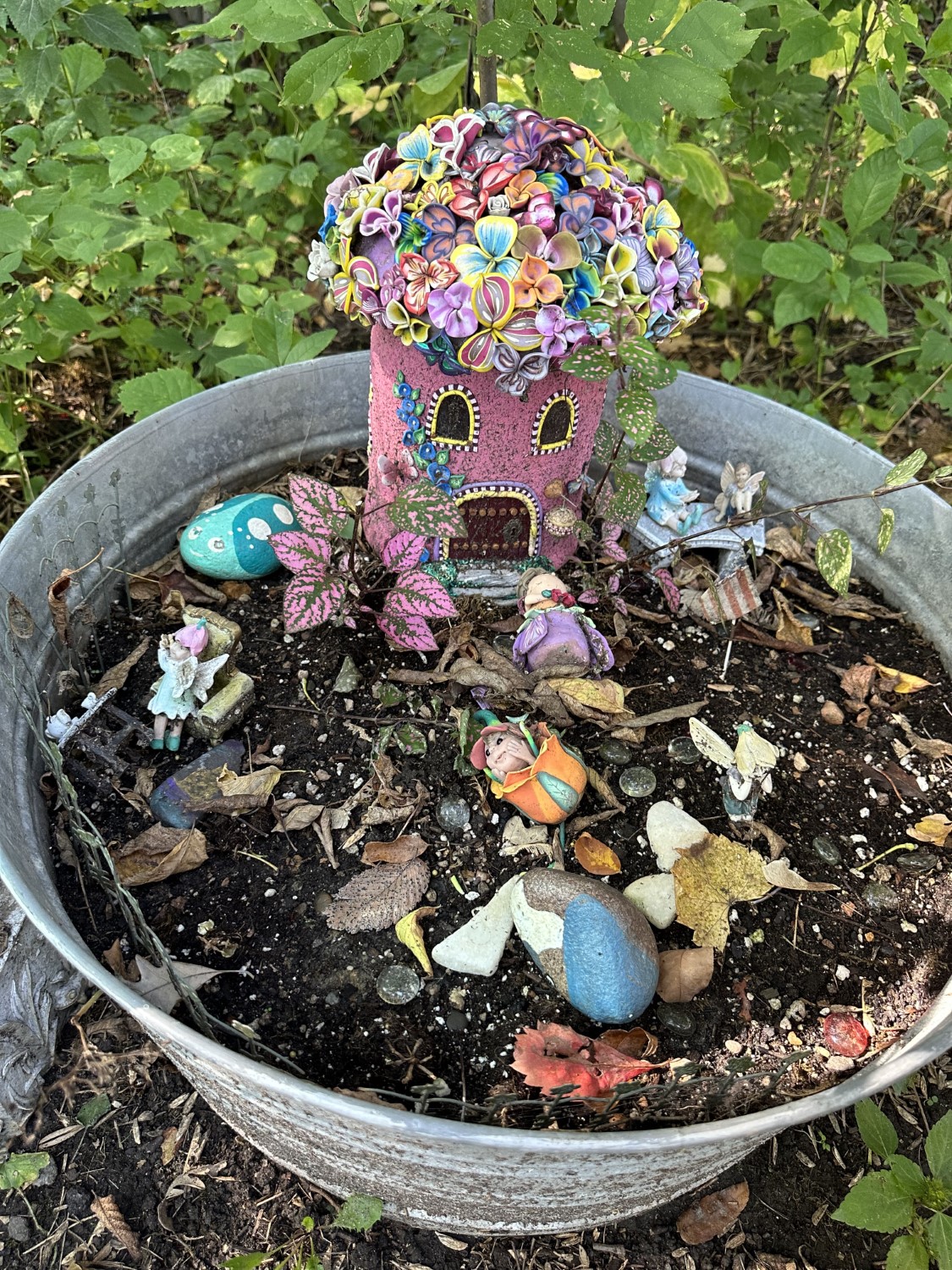 fairy home in a galvanized pot. After the hike, 4 hikers enjoyed a