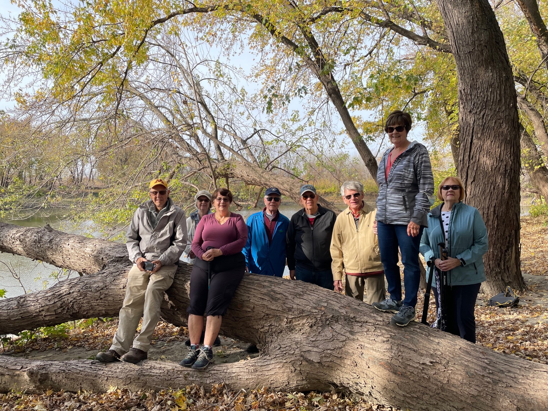 A group of 9 hikers enjoyed a beautiful fall day hiking along the banks of the Mississippi River.